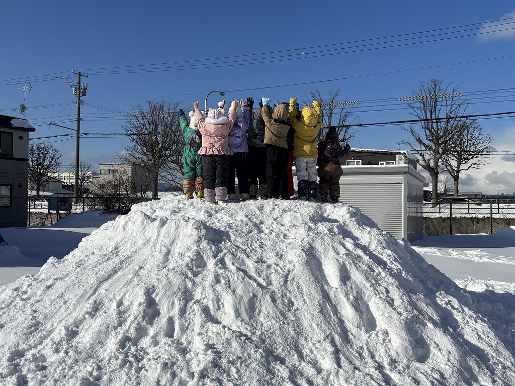 今年はまだ雪が少ないため、大きなヤマはできていませんが、バスの先生が雪をかき集めてくれました。